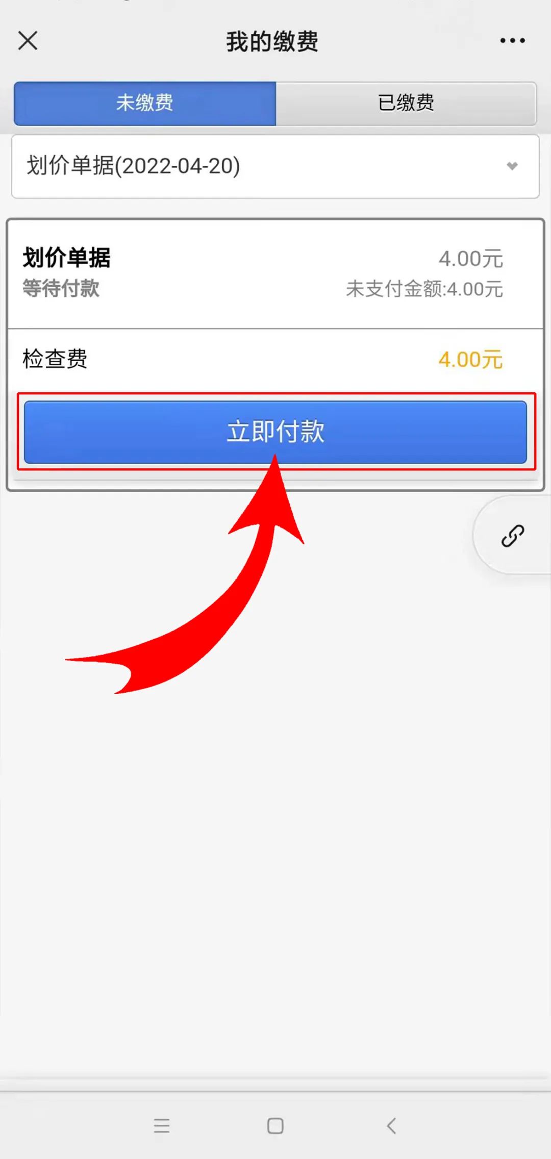 3.點擊【在線繳費】,查看已劃價的代繳費列表,點擊【立即付款】,彈出支付成功界面;