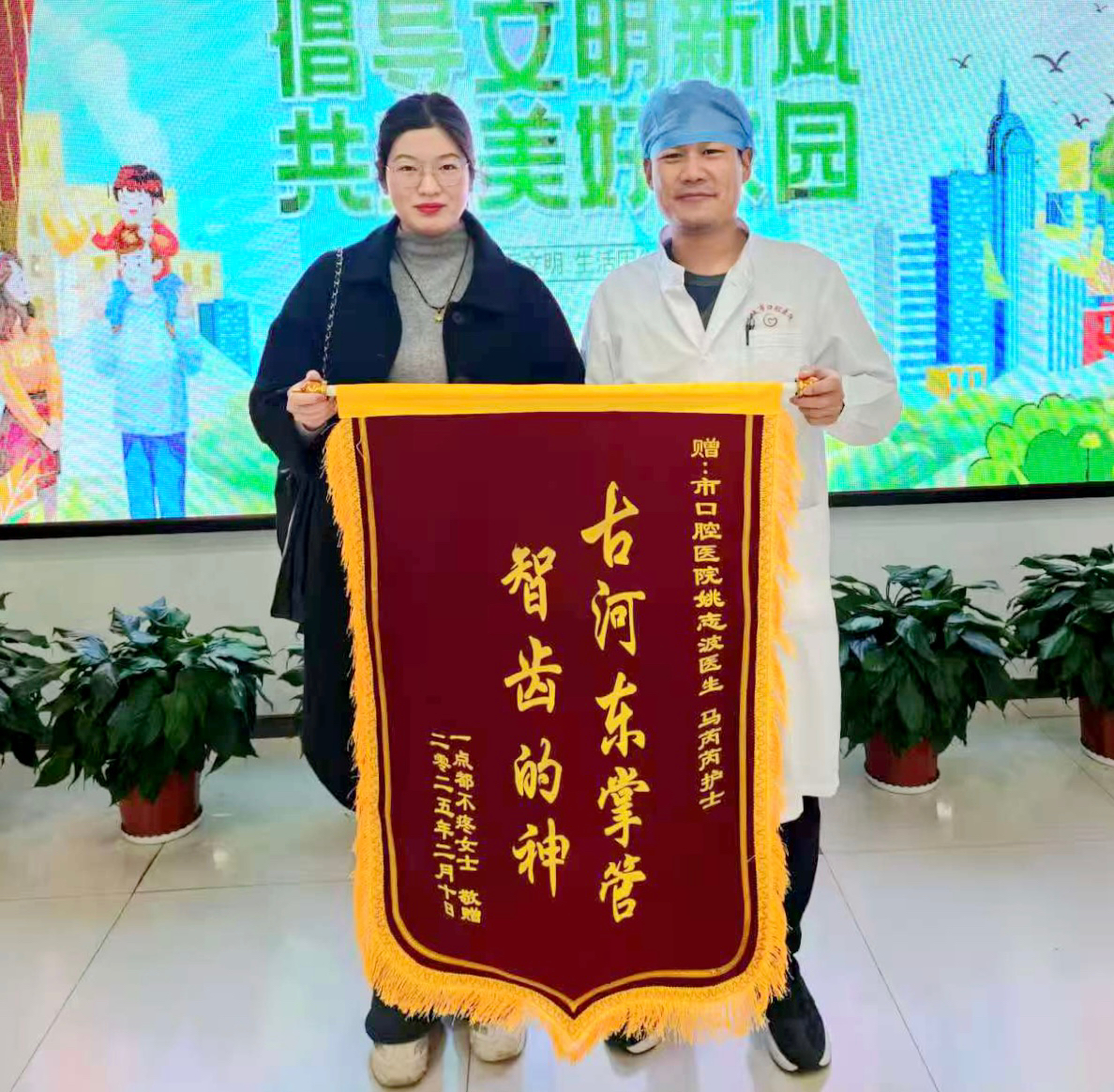 故事要追溯到年前,“特別怕疼女士”陪同父親來我院就診,初次遇到姚志波醫生。當時,姚志波微微俯身,用溫和的語氣與老人交流,還時不時夸贊老人傷口養護得用心。那真誠的笑容、關切的話語,就像冬日里的暖陽,照進了 “特別怕疼女士” 的心里,讓她印象深刻。 年后,“特別怕疼女士”也遭遇了困擾——智齒萌出,導致反復咬頰、牙齦腫痛。因為這份初遇的溫暖,她毫不猶豫通過醫院公眾平臺預約了姚志波的門診號。 2月10日,“特別怕疼女士”忐忑地來到西院區。門房大爺熱情地幫忙尋找車位,讓她安心不少;導診臺護士主動迎上來,耐心引導她去往診室,細致的服務消除了她內心的迷茫。 經診斷,需要拔除阻生智齒。一聽到要拔牙,“特別怕疼女士”緊張感拉滿。姚志波用幽默的話語緩解她的情緒,還有精湛技術的加持,讓診療過程更加舒適;護士馬芮芮全程陪伴,悉心安慰。 在先進技術和溫暖照護的雙重保障下,拔牙過程輕松完成。等手術結束時,“特別怕疼女士” 甚至不敢相信,這么快就結束了,而且一點都不疼。自此,“特別怕疼女士”變成了“一點都不疼女士”。 術后拆線時,收費窗口的工作人員也給了她一個小驚喜,主動提醒她 CT 費用可以用醫保報銷。這些看似平凡的細節,卻處處體現著醫院的人文關懷。 患者的感激之情,最終化為了一面承載著滿滿心意的錦旗。她提到,我院的網約號系統便捷高效,西院區停車方便,更重要的是,每一位醫護人員和工作人員都熱情周到,每一個細節都讓她感受到了家一般的溫暖。 這面錦旗,不僅是患者對姚志波及團隊的認可,更是對我院全體醫護人員的鼓勵。它將激勵著我們在醫療服務的道路上,繼續用愛與專業,為患者帶來更多的溫暖與希望。 |