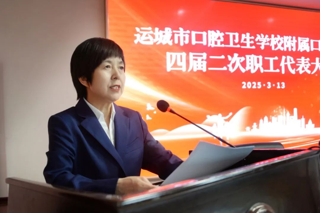 運城市口腔衛生學校黨委書記、市口腔醫院院長肖希娟作工作報告,她回顧了我院一年來的風雨歷程,既總結了成績,也指出了面臨的困難和挑戰。同時,指明了醫院2025年的工作目標。
