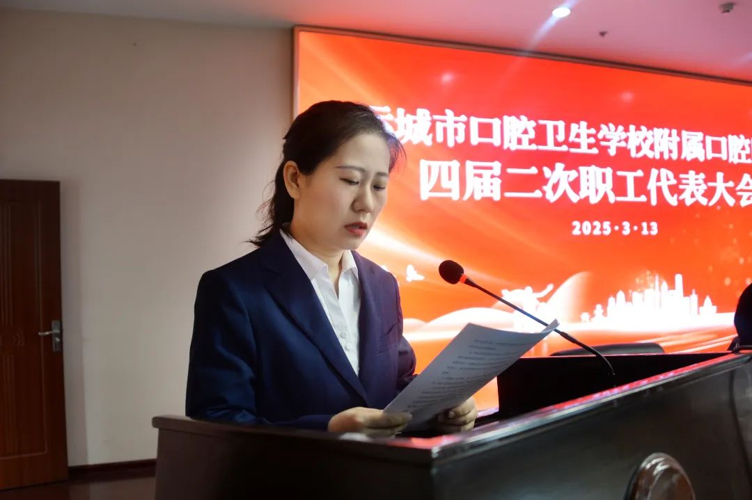 3 月 13 日,運城市口腔醫院第四屆職工代表大會二次會議在醫院會議室隆重召開。全體領導班子成員出席會議,醫院各部門職工代表參加會議。副院長、工會主席辛彩虹主持會議。